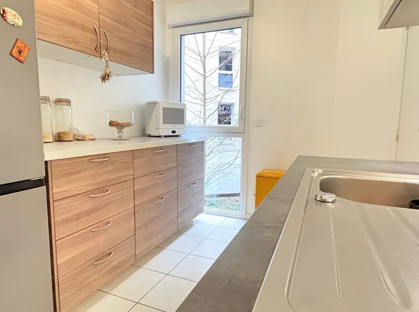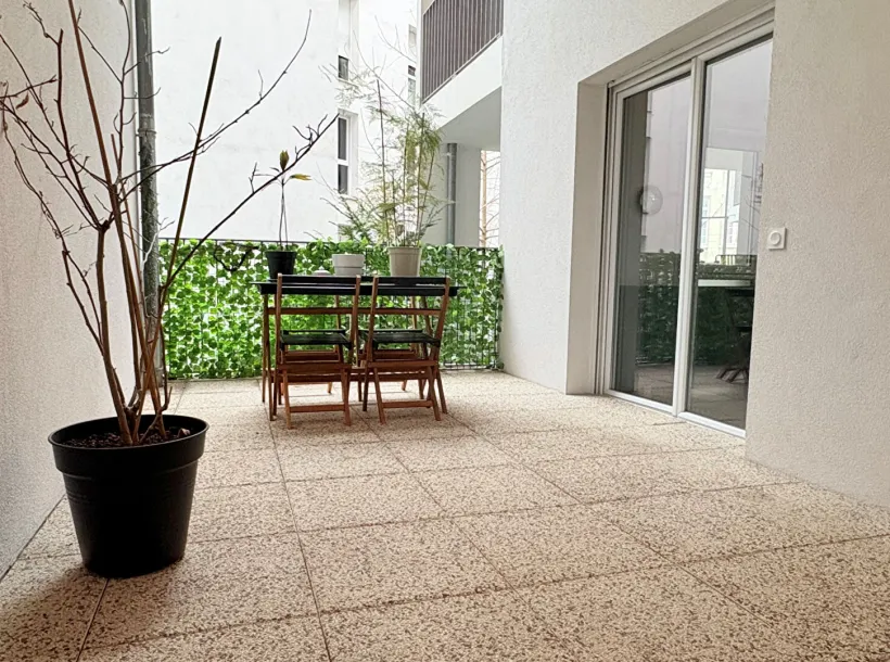 Lyon 7ème – Quartier Jean Macé – Dans une résidence récente idéalement située dans un quartier agréable et commerçant, ce T3 atypique de 67,23 m² carrez propose une exceptionnelle terrasse abritée de 18 m², véritable pièce à vivre supplémentaire dominant le jardin privé de la copropriété.