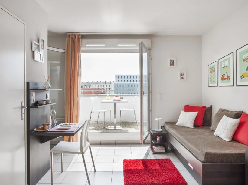 Studio meublé et équipé de 17,19 m², en excellent état, situé au 1 er étage d’une résidence étudiante avec services.