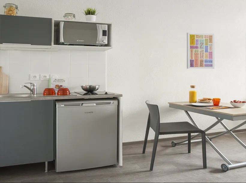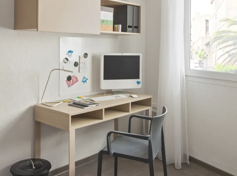 Le studio est entièrement meublé et équipé. Il est composé d’un hall d’entrée, un coin cuisine, une salle d’eau, un bureau et un lit. La résidence étudiante Carré Saint Pierre est située en plein coeur de Marseille, proche des principales lignes de transports, permettant aux étudiants de rejoindre rapidement leur faculté ou école. Les services pour locataire inclus : Box fibre individuelle, laverie équipée, salle commune, local à vélo, salle de fitness, un responsable de résidence etc.