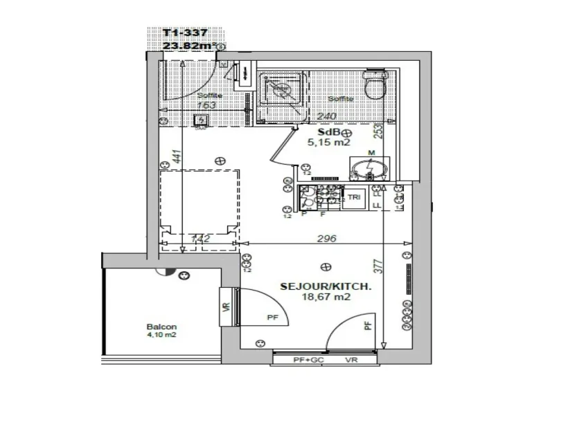 STRASBOURG – Rue Paul Eluard. VENDU LOUE : 347 euros HC / mois. A proximité immédiate des commerces, services et équipements. Cet appartement T1 d’une superficie d’environ 23 m² se situe au 3ème étage d’une résidence de 2016. Il se compose :