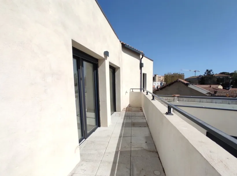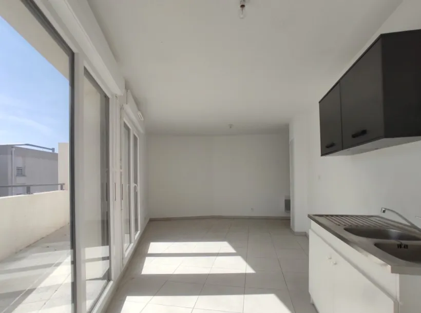 Appartement T1 de 31.84 m² avec terrasse de 9.71 m². Il se compose d'une entrée, d'un séjour ouvert sur un coin cuisine (évier, meuble sous évier, meubles haut) prolongé par l'extérieur et d'une salle d'eau (douche, meuble vasque, WC). Chauffage individuel électrique.