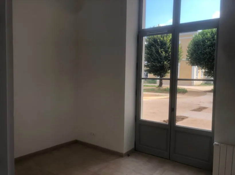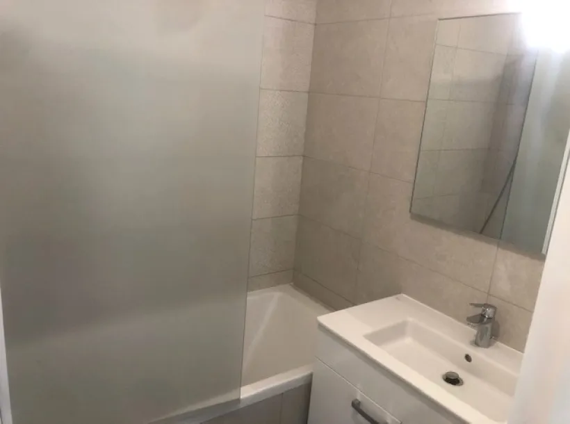 Appartement T3 de 80.2 m² situé au rez-de-chaussée. Il se compose d'une entrée, d'une pièce de vie ouverte sur une cuisine équipée (évier, plaque de cuisson, hotte, meubles de rangement), de deux chambres, d'une salle de bains (baignoire, meuble vasque, miroir) et WC séparés. Chauffage individuel électrique.