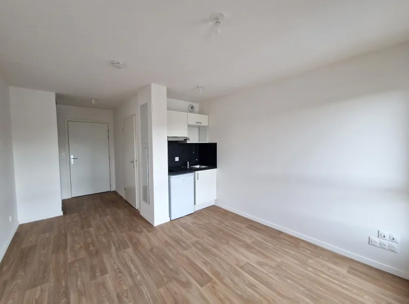 Studio neuf de 19,93 m². Il se compose d'une entrée avec placard, d'une belle pièce de vie ouverte sur un coin cuisine aménagé (plan de travail, frigo, hotte) et d'une salle d'eau avec WC. Chauffage individuel électrique, eau chaude et WIFI compris dans les charges.