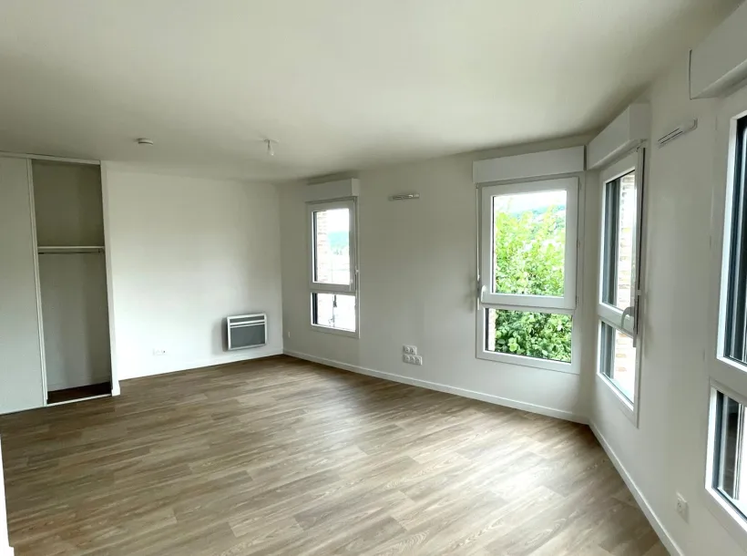 Appartement T1 BIS neuf de 36.24 m². Il se compose d'une entrée, d'un coin cuisine aménagé (plan de travail, frigo, hotte) ouvert sur un belle pièce de vie de 25.63 m² et d'une salle d'eau avec WC. Chauffage individuel électrique, eau chaude et WIFI compris dans les charges.