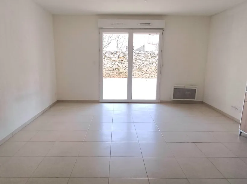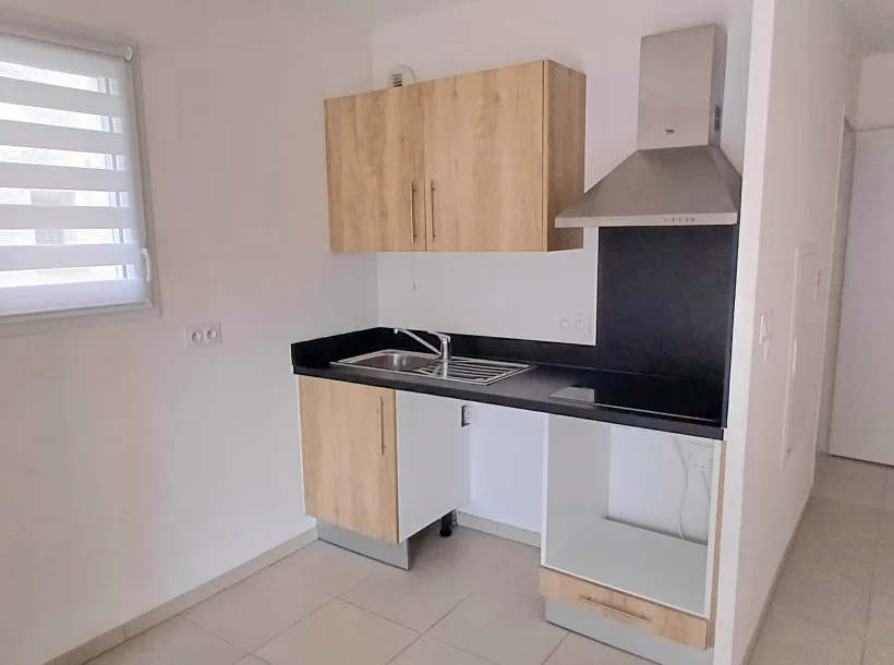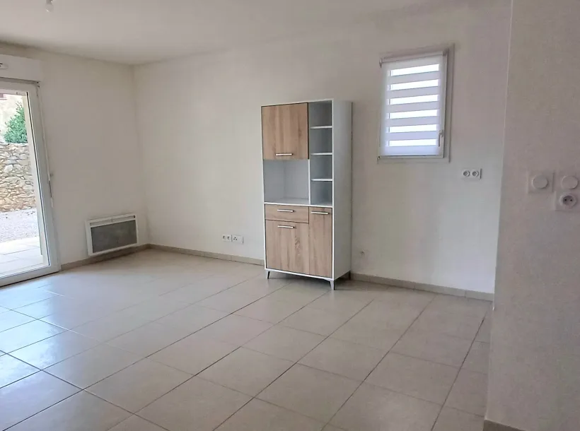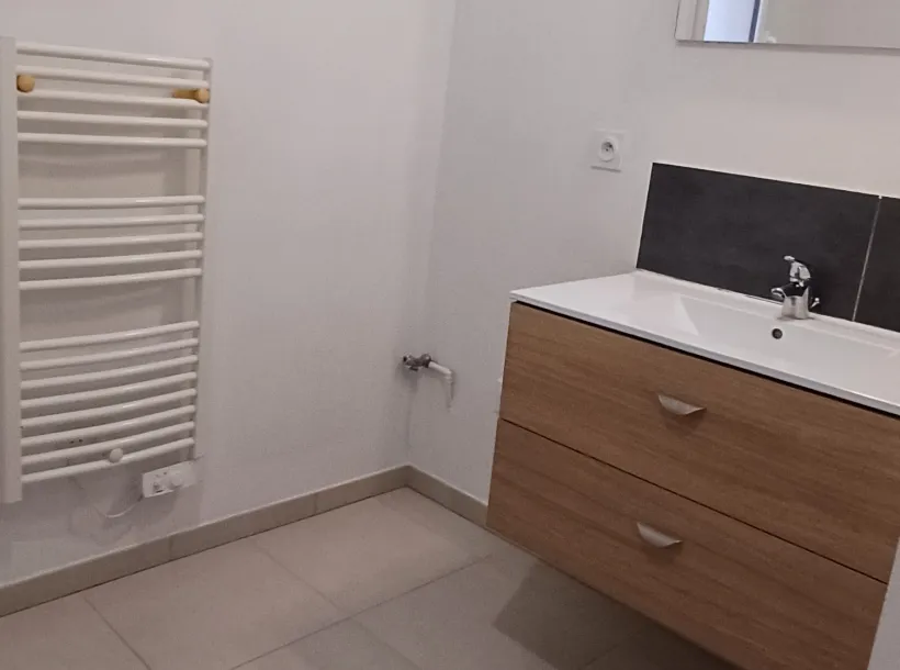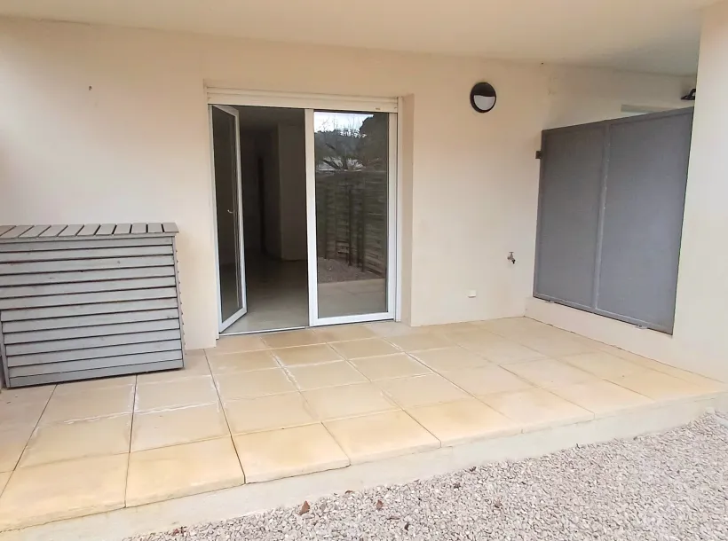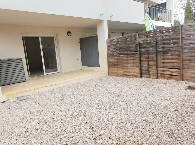 Appartement T1 de 33.26 m² avec une agréable terrasse de 10.02 m² et un jardin privatif de 45.66 m². Il se compose d'une entrée, d'une pièce de vie ouverte sur une cuisine équipée (évier, plaque de cuisson, hotte, meubles de rangement, plan de travail) prolongée par l'extérieur et d'une salle d'eau (douche, meuble vasque, miroir, WC). Chauffage individuel électrique.